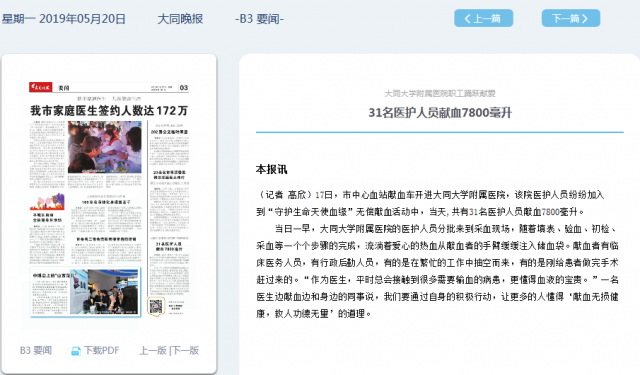 大同大学附属医院职工踊跃献爱 31名医护人员献血7800毫升