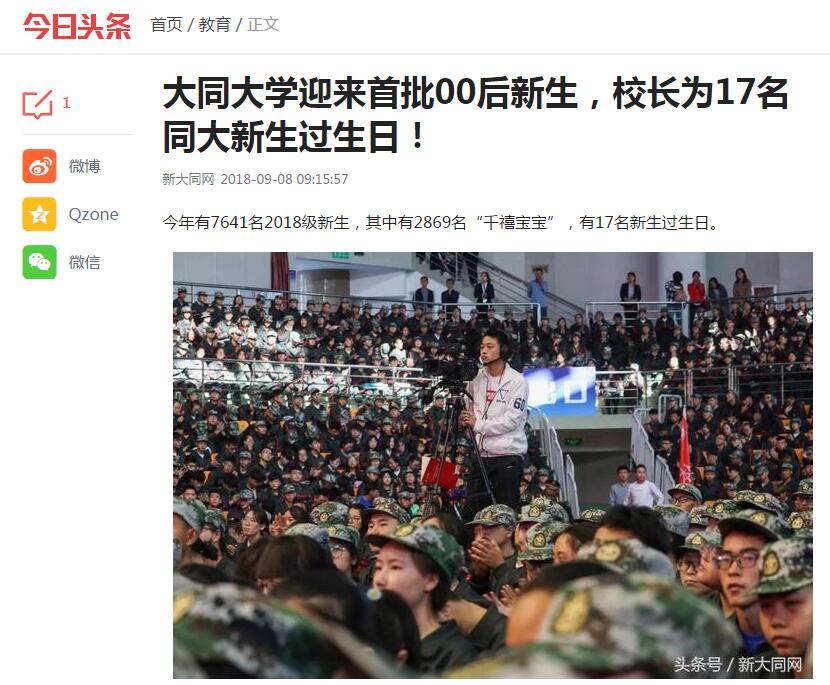 【今日头条】大同大学迎来首批00后新生,校长为17名同大新生过生日!