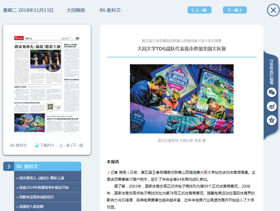 【大同晚报】第五届王者荣耀高校联赛山西海选赛大同大学站落幕 大同大学TDG战队代表我市参加全国大区赛