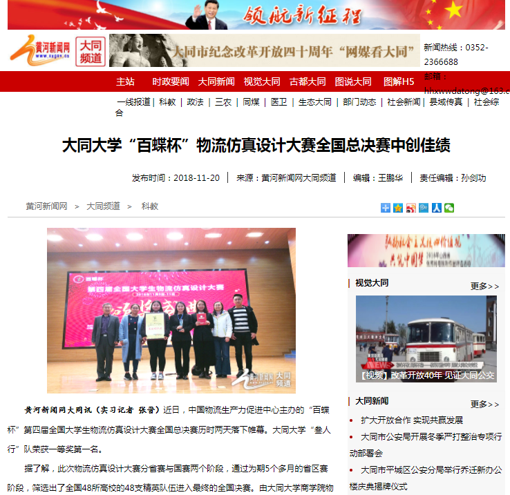 【黄河新闻网】大同大学“百蝶杯”物流仿真设计大赛全国总决赛中创佳绩