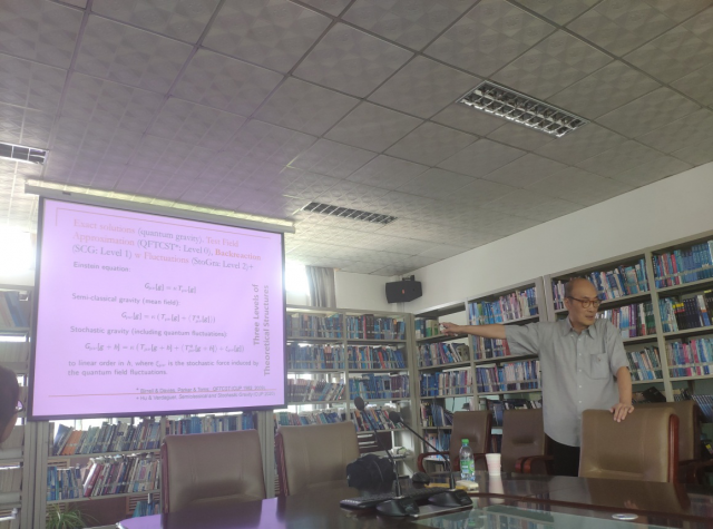 6月28日上午,美国马里兰大学胡比乐教授应邀在明理楼三层会议室作了题为“Gravitational Cat State and StochasticGravity”的学术讲座。讲座由李怀繁教授主持,物电学院60多名师生聆听了讲座。