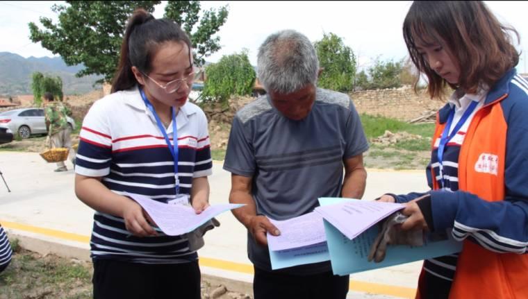 由于农村交通不便、信息闭塞,导致山区农村经济的发展缓慢,缺乏科技知识的普及。实践团成员针对这种情况,制做了苹果种植和羊养殖的宣传单并分发给各位农民,耐心讲解农民不懂的问题,尽管夏日炎炎,成员们依然热情高涨,得到了村民的广泛好评。