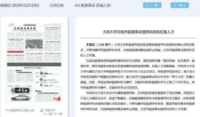 本报讯(记者 董芳)大同大学新能源学院积极培育新能源学科领域新的增长点和突破点,不断完善学校能源学科体系,为国家能源战略实施和山西省、大同市能源革命提供科技和人才支撑。