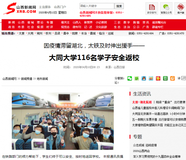 3月25日零时,湖北省武汉市以外地区解除离鄂通道管控。如何安全离鄂返晋,成了困扰大同大学和116名学生的一道难题。3月30日,大同大学向太原局集团公司发出请求,希望能够给予帮助。