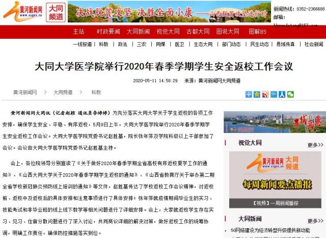 下一步,大同大学医学院将按照大同大学2020年春季学期开学返校报到安排,通过开展返校工作调研、方案研究、附属医院走访、健康动态监测等多种途径,精心做好疫情防控和学生返校工作,确保学生返校平稳有序。