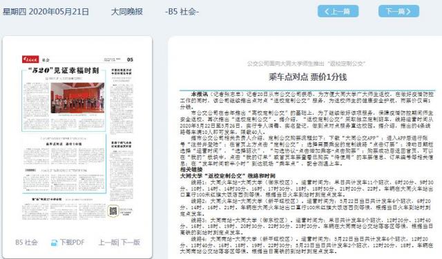 大同大学“返校定制公交”线路和时间