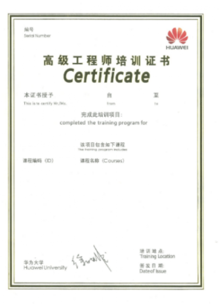 (4) 参与培训将获得华为ICT学院颁发的工程师培训结业证书,参与华为认证考试并通过将获得对应的华为认证证书。