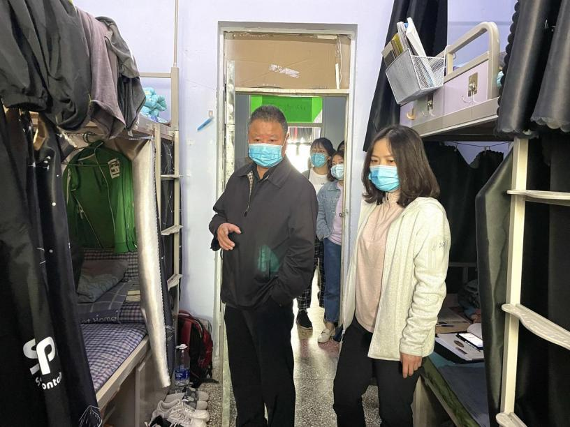 为贯彻落实学校疫情防控要求和封闭管理举措,4月9日下午,院党委书记苏佩生及校党委研工部副部长张继红、院党委副书记宋睿媛一行八人深入到新正苑2号楼看望、了解封校后学生的学习生活情况并对宿舍卫生安全进行检查。