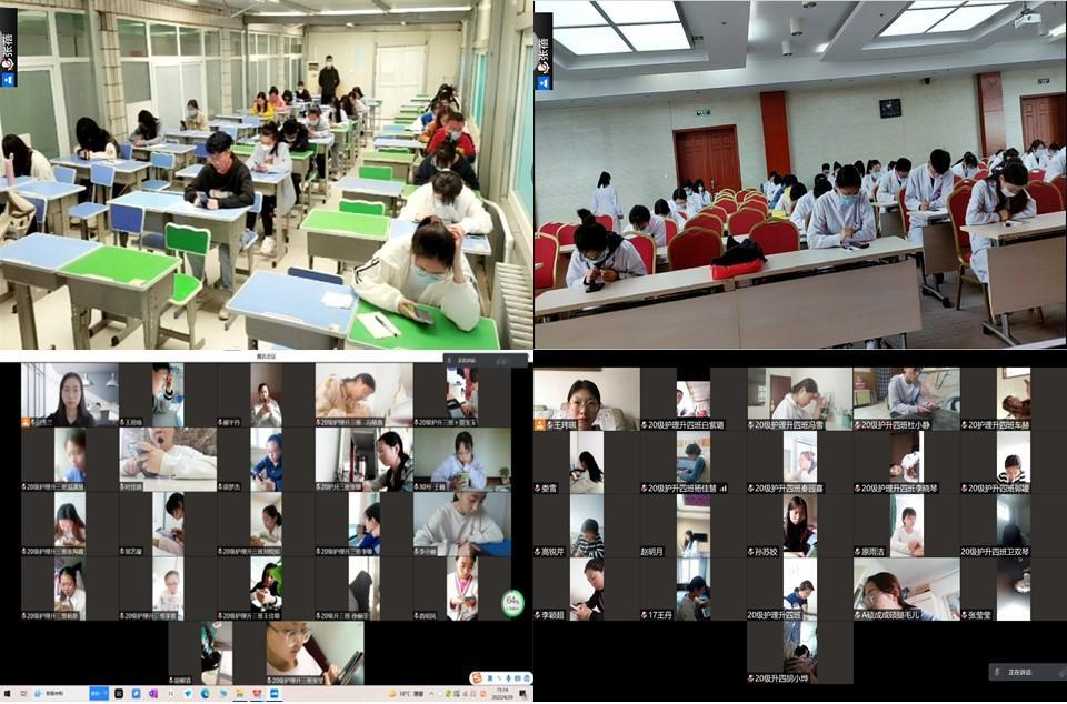 毕业理论考核分两场进行,考试科目分别为基础护理学和内、外科护理学。所有考试试题均借助学习通平台在线发放,学院教师负责线上及线下考场监考工作,学院领导进行巡查监督。各考场秩序良好,均圆满完成考核工作。