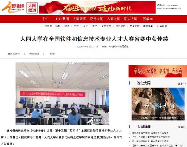 大同大学在全国软件和信息技术专业人才大赛省赛中获佳绩