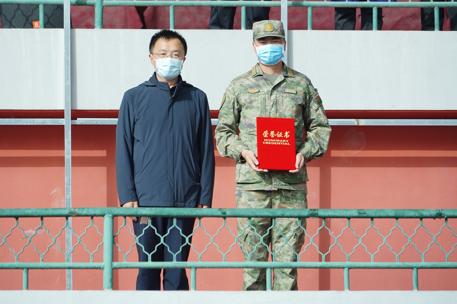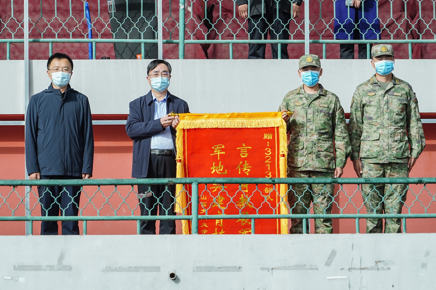 校党委书记赵水民和党委副书记寇福明分别向承训部队颁授了锦旗和荣誉证书。