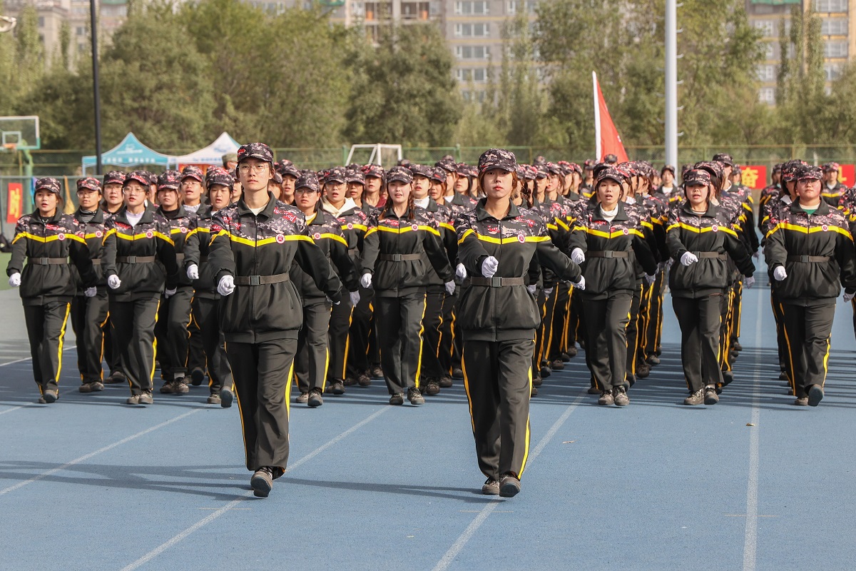迈着雄健的步伐,昂首阔步、军姿挺拔、军容整齐、军威肃严、精神抖擞、意气风发,各营方队的队列展示整齐划一、精彩纷呈。举手间展现出勃勃雄姿,眉宇间透露出必胜豪气,学子们用青春燃烧期望,用豪情点亮梦想,用铿锵有力的步伐和响亮的口号向以后的四年大学生活庄严宣誓着:不论前路多么坎坷,多么崎岖,2022级的全体学子都会自立自强,披荆斩棘,勇往直前,战胜困难,以优异的学习成绩报效祖国、社会、学校和家人!