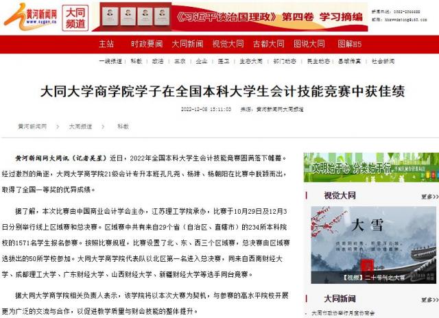 大同大学商学院学子在全国本科大学生会计技能竞赛中获佳绩