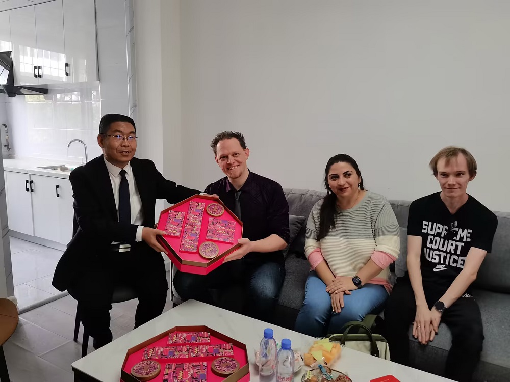 月满人团圆,家国共此时。值此中秋节、国庆节“双节”来临之际,9月28日上午,校党委常委、副校长雷建设走访了我校在同外籍教师,向他们表示节日的慰问。国际交流中心全体人员参加活动。