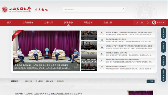 在信息传播方面,“同大智枢” 扮演着资讯中枢的重要角色。它全面整合学校新闻资讯、通知公告、媒体关注、基层动态等内容,成为校园信息的汇聚高地。师生登录平台,即可第一时间获取学校最新动态,不错过任何重要通知与精彩活动。同时,平台依据信息类别、发布时间等维度进行智能分类与推送,让师生能够快速定位所需资讯。无论是了解学校的发展动态、教学科研成果,还是掌握近期校园文化活动安排,“同大智枢” 都能为师生提供及时、全面、精准的信息服务,助力师生更好地融入校园生活,把握发展机遇。