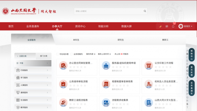 作为办事中枢,“同大智枢” 为师生打造了便捷高效的一站式办事窗口。以往师生办理各类事务,需在不同部门办公室之间来回奔波,耗费大量时间与精力。如今,依托 “同大智枢”,请假申请、校园卡办理、故障报修、场地借用等日常事务,只需在平台上提交申请,即可按照既定流程快速流转审批。平台还实时展示事务办理进度,方便师生随时跟踪。这种集中式、流程化的办事模式,大幅简化了办事流程,缩短了办理周期,显著提升了师生的办事体验与满意度,让校园服务更贴心、更高效。