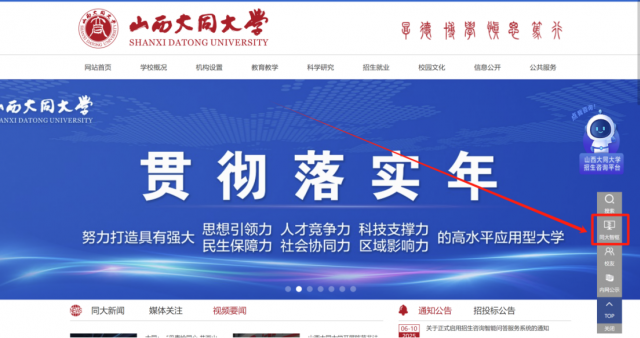 访问方式:点击学校官网右侧菜单栏“同大智枢”