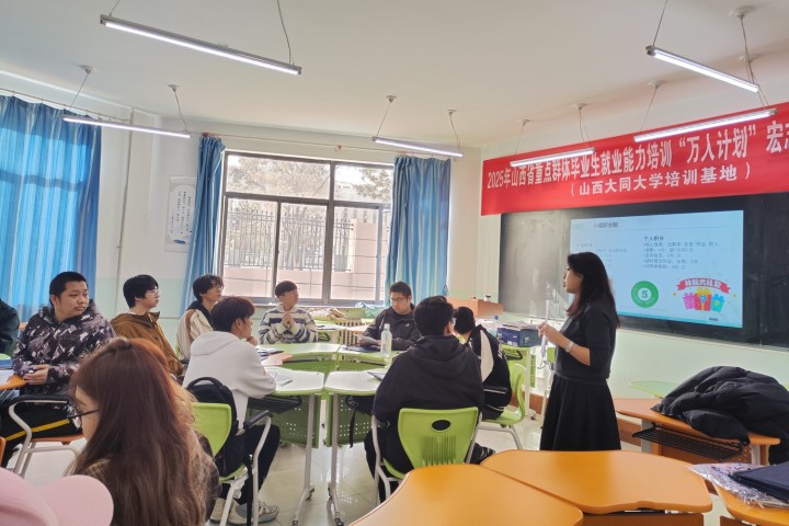 本期培训覆盖山西大同大学、山西工学院等八所院校逾千名学子,其中我校参训学员达400余名,涵盖22个学院,共设10个教学班。课程体系以“赋能校园成长,助力学子远航”为核心理念,围绕职业发展规划、求职核心竞争力等维度开展系统化培训,由大学生职业规划与就业指导教研室教师与校外专家联合授课。