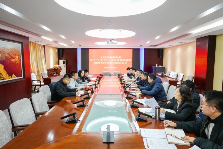 12月25日,大同市委组织部“十五五”人才发展规划调研座谈会在我校行知楼14层会议室召开。市委组织部副部长郑天杰带队调研,校党委副书记张卫国出席会议。重点研究平台负责人、校“十五五”规划编制相关负责人、党委人才办全体工作人员参加座谈。