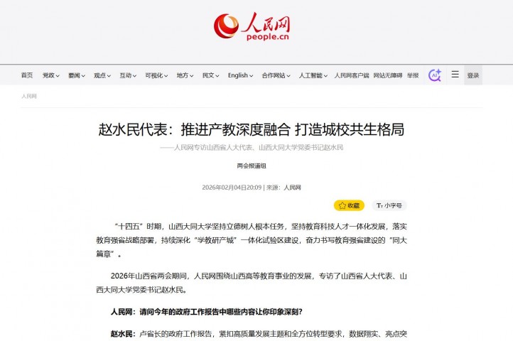 2026年山西省两会期间,人民网围绕山西高等教育事业的发展,专访了山西省人大代表、山西大同大学党委书记赵水民。