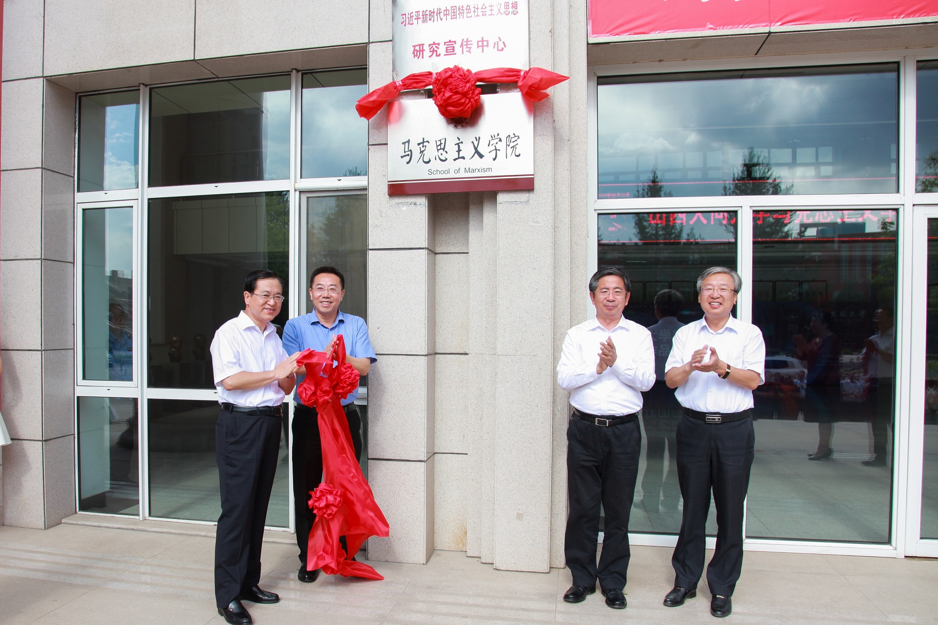 之后,张吉福、宋涛、马存根、冯锋一起为马克思主义学院揭牌。